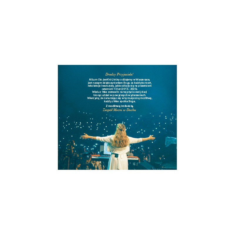 OTO JEST KRÓL to dwupłytowy album, na którym zebraliśmy 19 koncertowych wykonań z ostatnich 10 lat. To 110 minut uwielbienia z zespołem Mocni w Duchu.